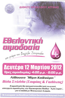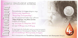 Στην αίθουσα της Αιμοδοσίας θα βρίσκονται και μέλει του συλλόγου των Παιδιών με Μεσογειακή Αναιμία